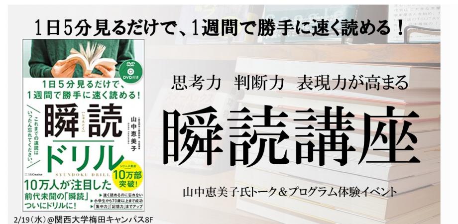 10万人が注目した前代未聞の「瞬読」著者の山中恵美子氏による瞬読講座では、ただ早く読むだけではなく思考力・判断力・表現力や運動神経などあらゆる能力が強化されるメソッドを紹介いたします。
