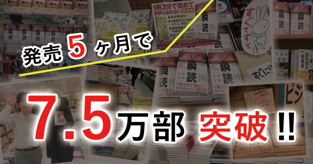 ホーム新着情報PRESS RELEASE(プレスリリース) 速読本ベストセラー「瞬読」発売約5カ月で10刷、7.5万部突破! 2019/05/07 2020/10/02 SHARE ツイート シェア はてブ LINE Pocket 瞬読、またまた増刷で、今回で10刷目です! 発売5ヵ月で、7.5万部です! 売れ行きの勢いが全然止まっていないとの事で、 これもひとえに、皆さまの温かいご支援、ご愛顧の賜物だと思っています。 本当に感謝です。ありがとうございます。