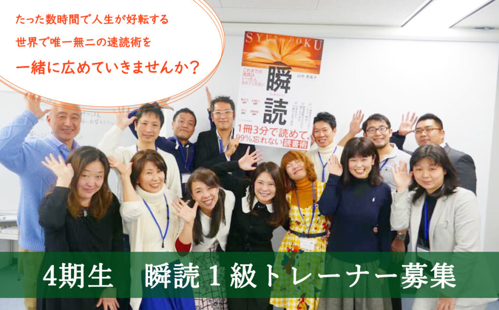 この度、瞬読1級トレーナー【3期生】に続き、【4期生】を募集します。